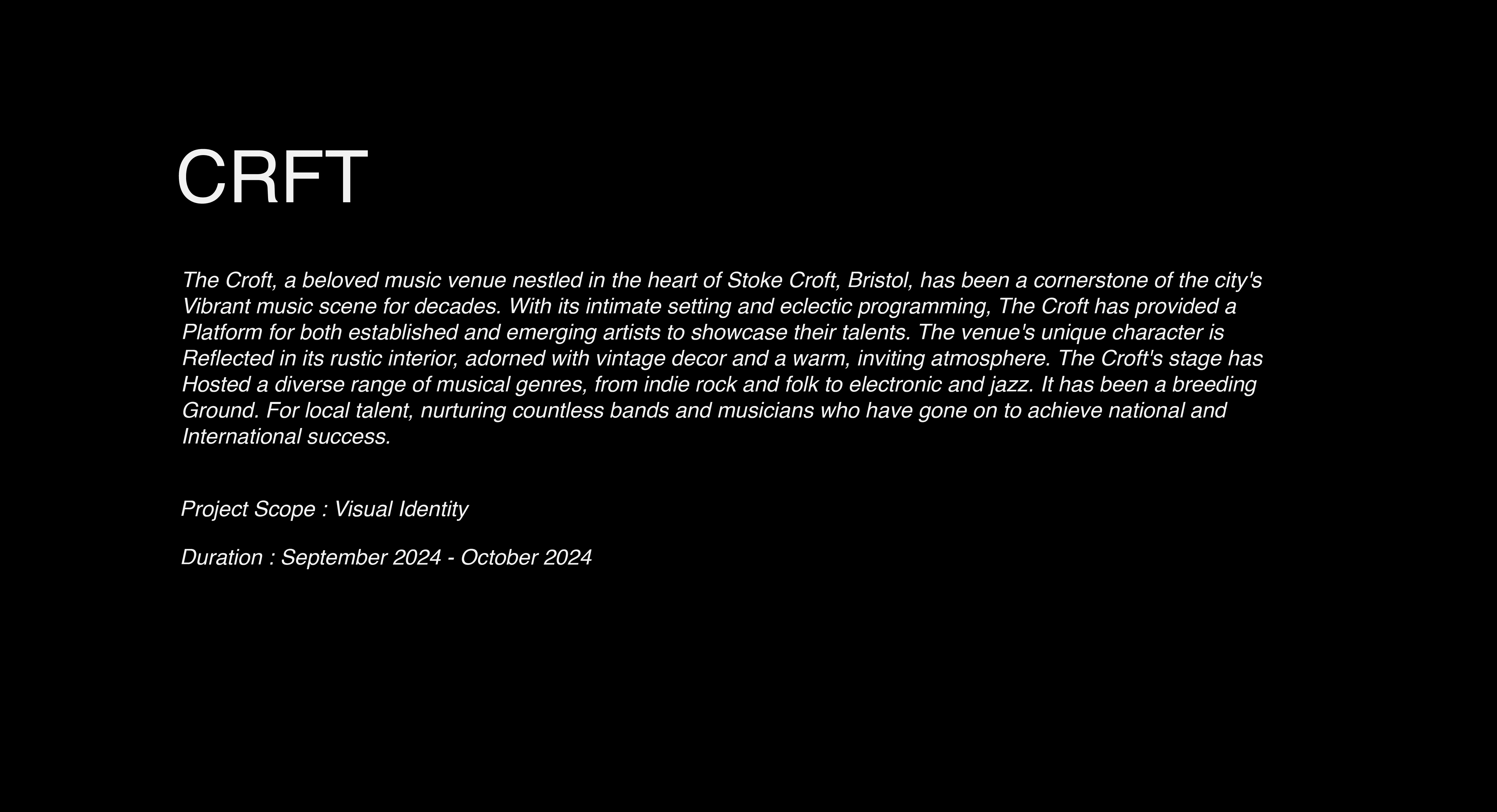 CRFT™ is a music venue based in croft.CRFT provies stage to new artists and underrated artists who are new in the industry and make a name for themselves